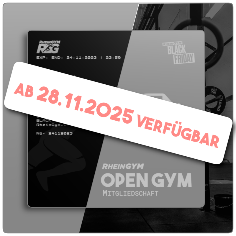 - Der RheinGym Black Friday geht nur vom 28.11.2025 um 00:00 Uhr bis 28.11.2025 um 23:59 Uhr -